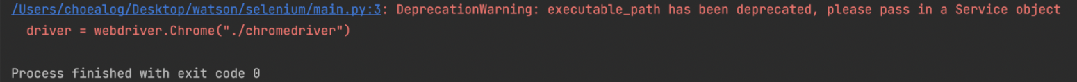 DeprecationWarning: executable_path has been deprecated, please pass in a Service object driver = webdriver.Chrome("./chromedriver")